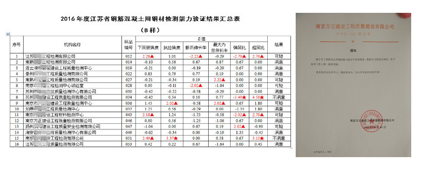 2016年度江蘇省鋼筋混凝土用鋼材檢測能力驗證結(jié)果