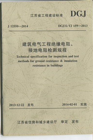 DGJ32/TJ159-2013《建筑電氣工程絕緣電阻、接地電阻檢測規(guī)程》